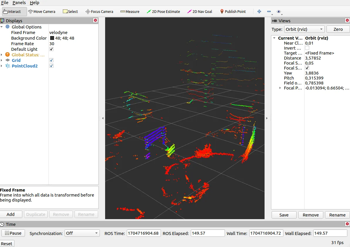 /velodyne_points topic. Choose the PointCloud2 display and click Ok.